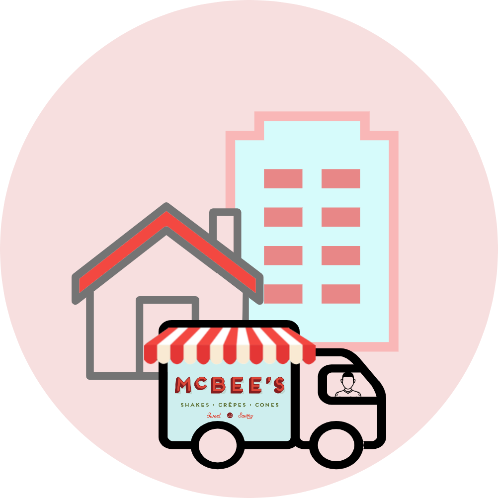 We'll bring the magic of McBees to you! If you are celebrating at your home, your office or event location, we'll come make crepes for you all and delight you and your guests with our on-site crepe creations! Our on-site crepe station is fully contained and our crepe barristas will serve your guests while you get to enjoy your time with your guests.